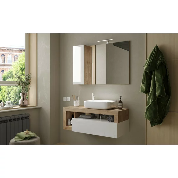 Dulap cu oglinda alb/maro LC Mobili Italia Hamburg 110x75 cm