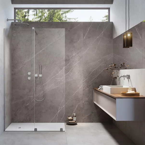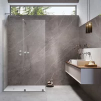 Paravan de dus de tip Walk-In format din o parte fixa si o parte culisanta, profil nichel periat si sticla securizata de 8 mm transparenta cu bara stabilizatoare de 120 cm. Partea fixa se monteaza pe stanga.