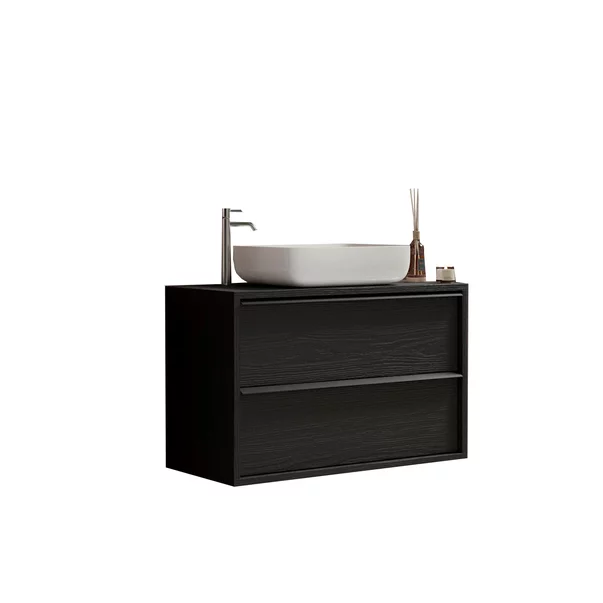 Set dulap baza si lavoar suspendat negru LC Mobili Italia Steel 79x64x43 cm, cu 2 sertare.