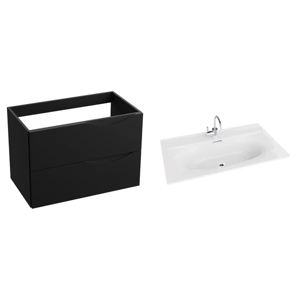 Set dulap baza suspendat Rune Asger 2 sertare 80 cm negru mat si lavoar alb