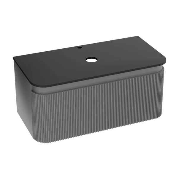 Set dulap baza suspendat Rune Hrafna 1 sertar 100 cm grafit lucios si blat negru