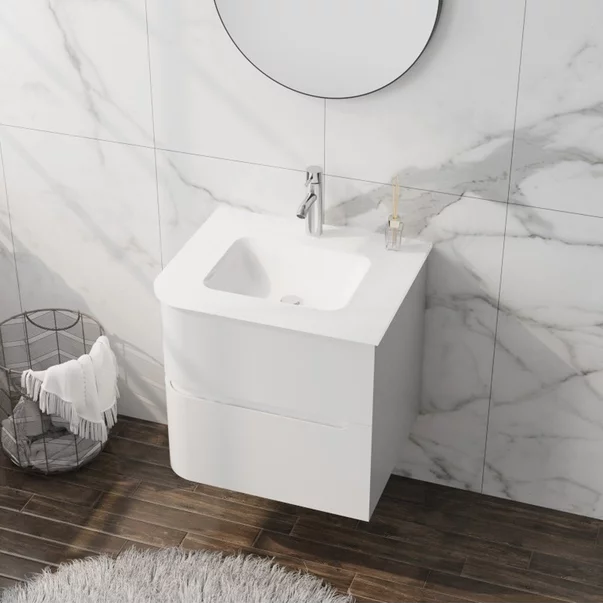 Set dulap baza suspendat Rune Jorunn 2 sertare 60 cm alb lucios si lavoar alb