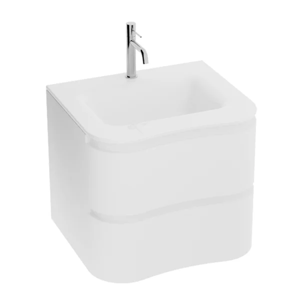 Set dulap baza suspendat Rune Katla 2 sertare 60 cm alb lucios si lavoar alb