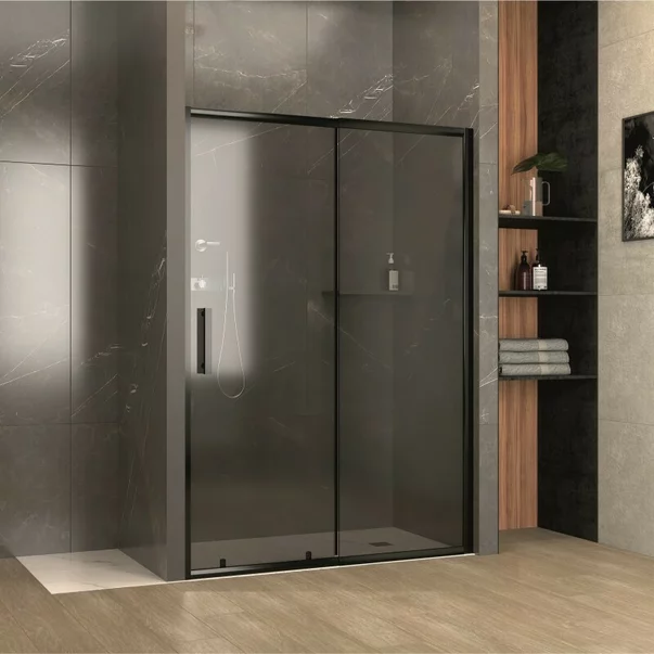Usa de nisa culisanta Inter Ceramic 140 cm sticla 5 mm profil negru mat - fumuriu