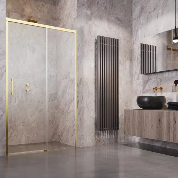 Usa de nisa culisanta Radaway Idea DWJ 130 cm sticla 6 mm finisaj auriu-transparent deschidere dreapta